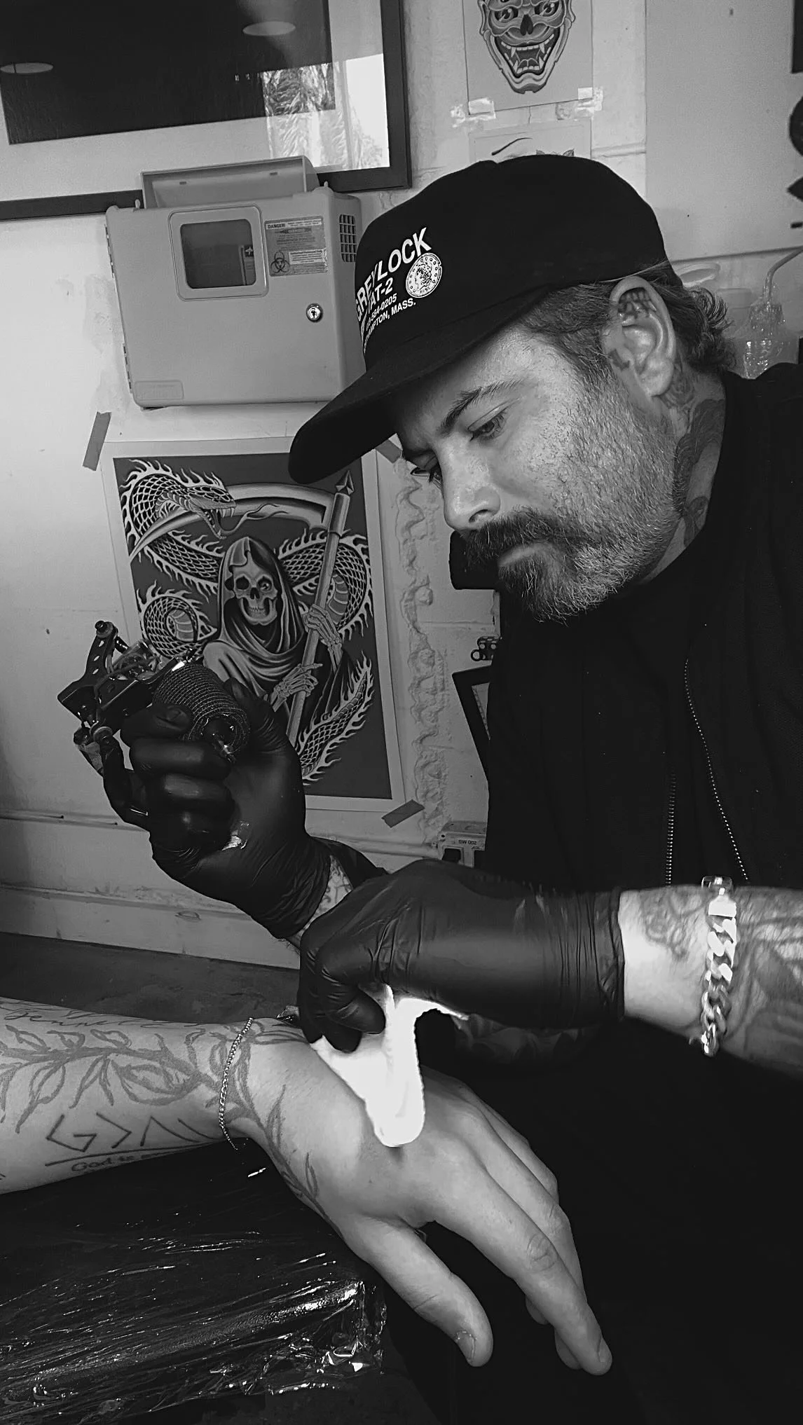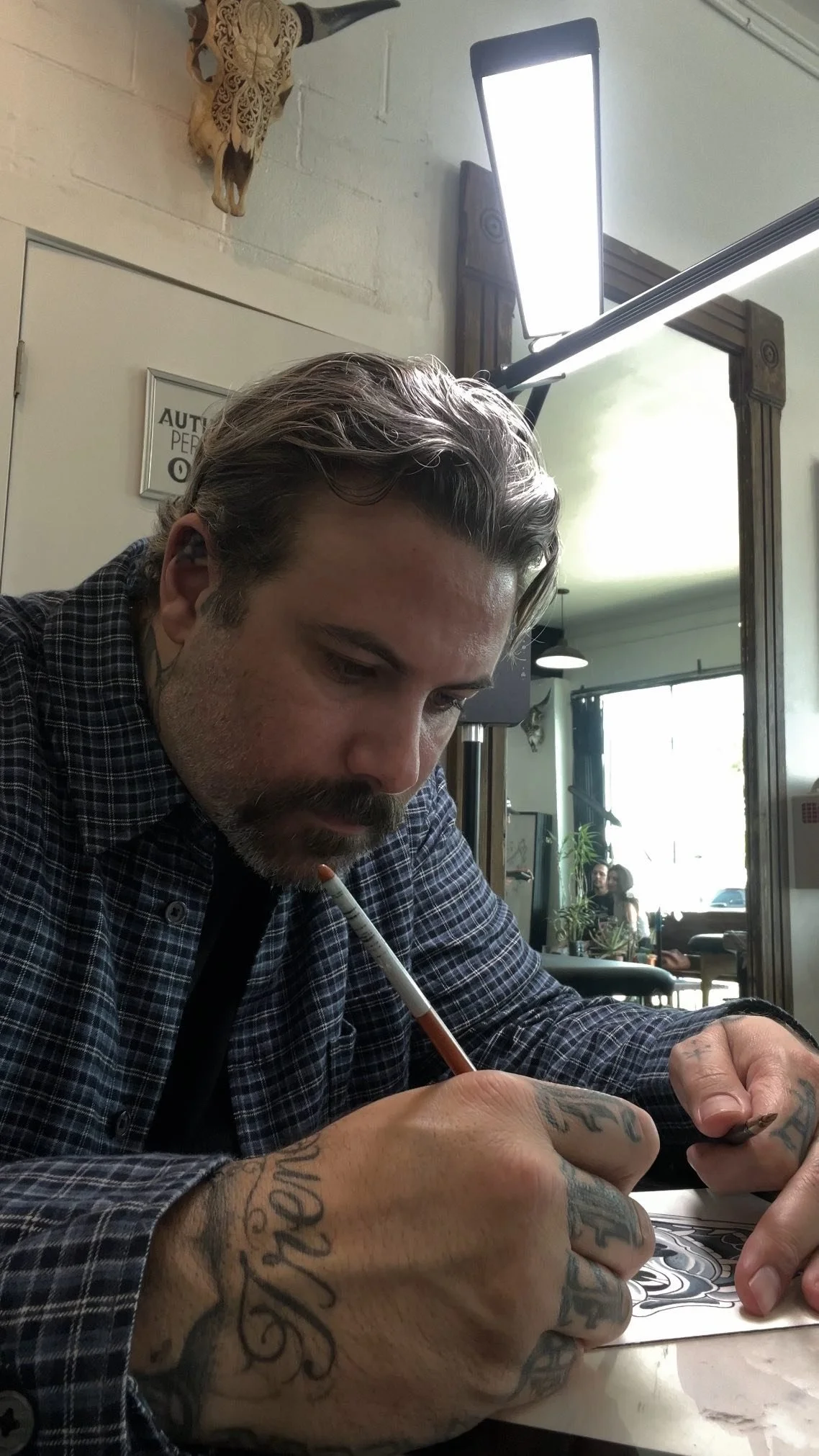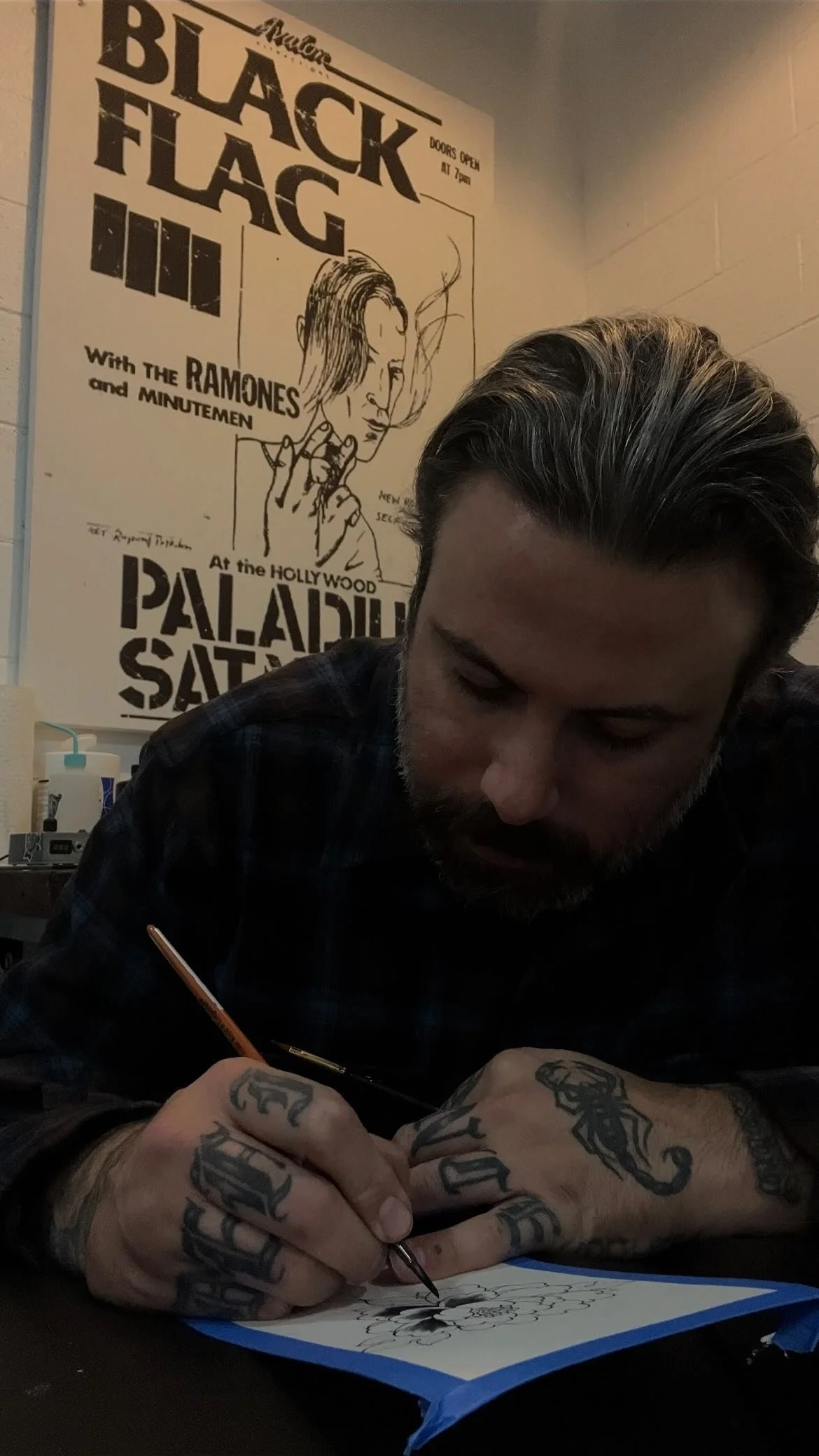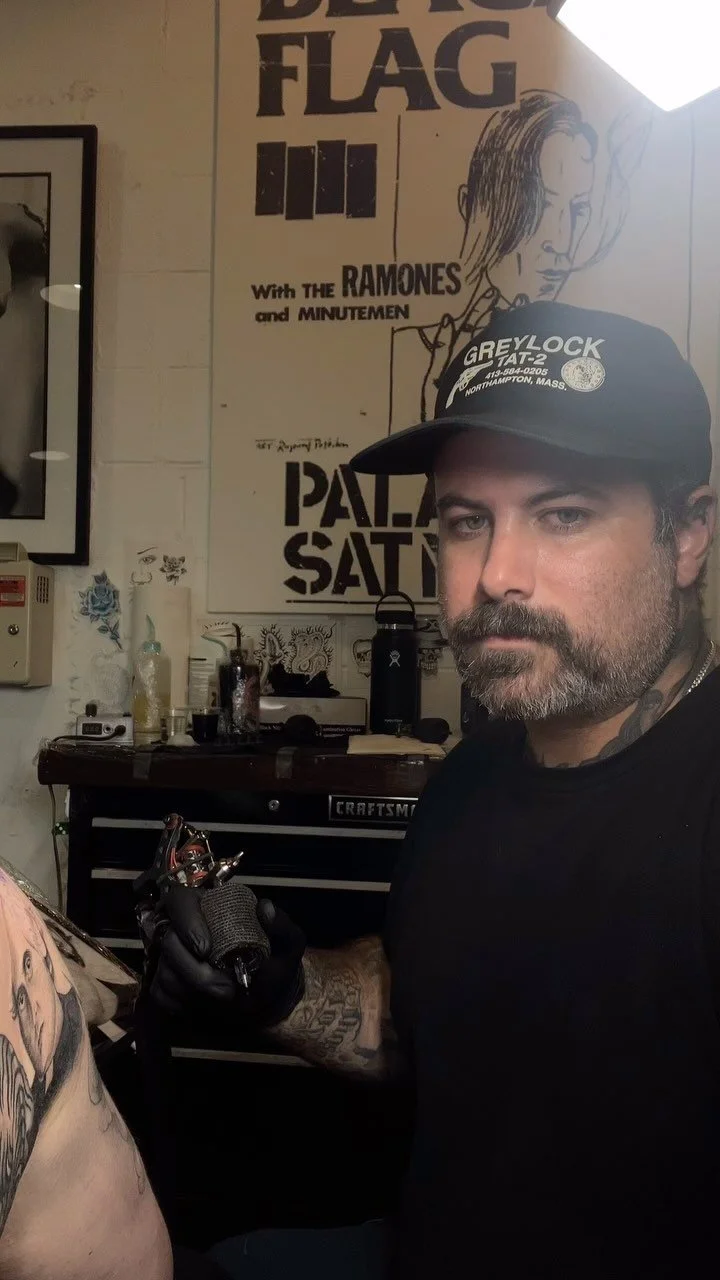 An artist since i could remember it wasnt til i was in my early teens at punk shows seeing tattoos i was immediately interested. after receiving my first tattoo at 18 i knew i wanted to be a tattooer. after tattooing out of my house for a while i know i needed proper guidance. It took me many hard years, traveling to different countries on the other side of the planet and even moving to the east coast to earn my way into a shop as an apprentice at providence tattoo in providence rhode island. after a 3 year apprenticeship i moved back to california.