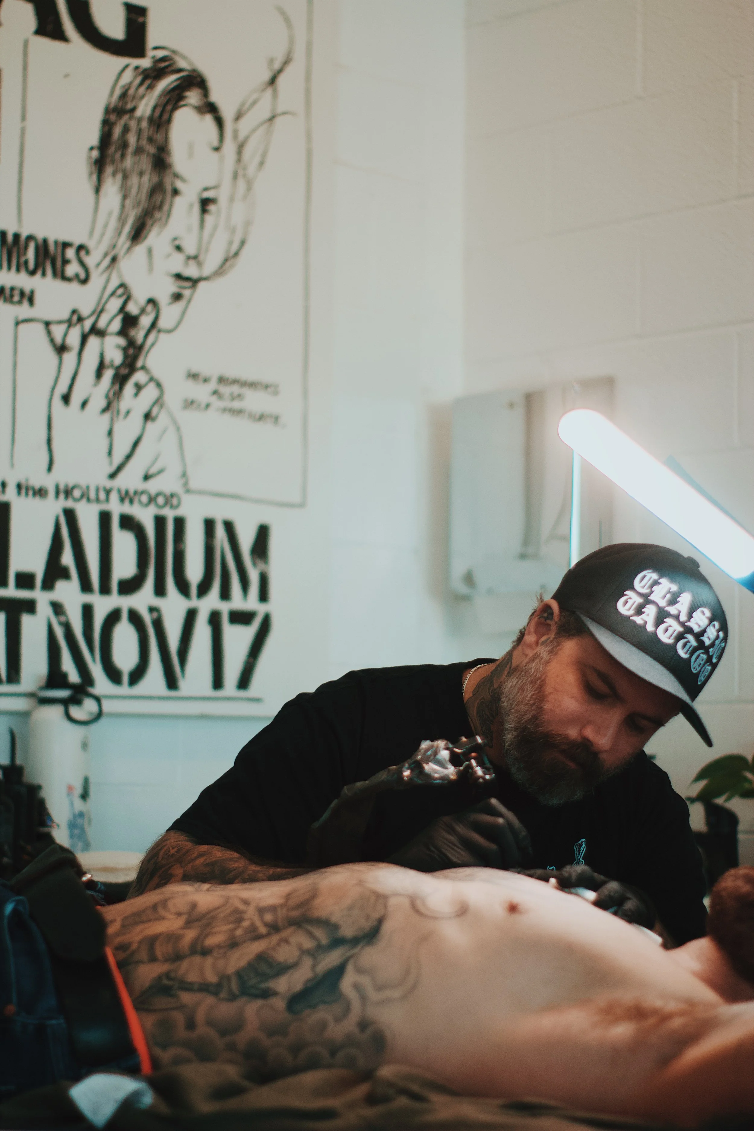 mike tattoos at lincoln tattoo company in venice.